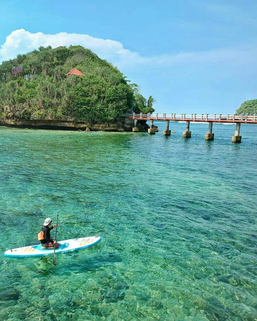 Menyusuri jembatan panjang dan berjalan di sepanjang pesisir pantai adalah aktivitas yang menyenangkan. Anda dapat merasakan sensasi berjalan di atas laut melalui jembatan, kemudian menjelajahi pulau karang di ujungnya. Jalan setapak yang rapi di pulau memudahkan eksplorasi dan menikmati pemandangan dari berbagai sudut.